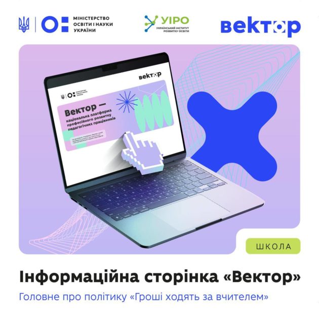 Міністерство освіти і науки України спільно з Українським інститутом розвитку освіти запустило інформаційну сторінку «Вектор», де зібрано ключові матеріали про політику «Гроші ходять за вчителем». «Вектор» — це демоверсія майбутньої національної платформи професійного розвитку педагогічних працівників, де вони зможуть самостійно формувати власну траєкторію навчання, обираючи курси, супервізорів чи інші можливості для підвищення кваліфікації.