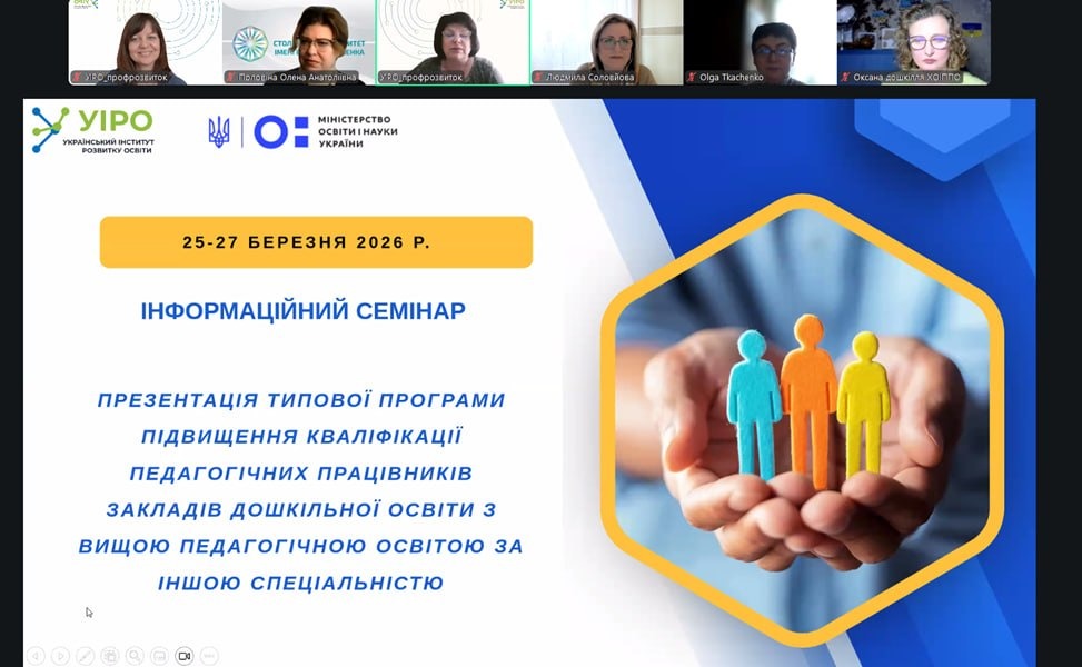 25–27 березня відділ професійного розвитку педагогічних працівників державної установи «Український інститут розвитку освіти» провів масштабний триденний інформаційний семінар «Професійна впевненість у дошкіллі». Ключовою подією заходу стала презентація Типової програми підвищення кваліфікації для педагогів закладів дошкільної освіти, які мають вищу освіту з інших спеціальностей.