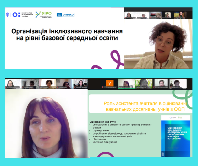 Державною установою «Український інститут розвитку освіти» на виконання доручення Міністерства освіти і науки України № 1/55-Д-25 від 07.10.2025 р., за підтримки Представництва ЮНЕСКО в Україні з 13 по 20 жовтня 2025 року організовано підготовку тренерів асистентів учителів закладів загальної середньої освіти, діяльність яких спрямована на забезпечення реалізації Державного стандарту базової середньої освіти в другому циклі базової середньої освіти (базове предметне навчання) у 2025/26 навчальному році, пілотних (9) класів. Підвищення кваліфікації у дистанційному форматі пройшли 53 фахівці закладів післядипломної педагогічної освіти з 24 областей та м. Києва.